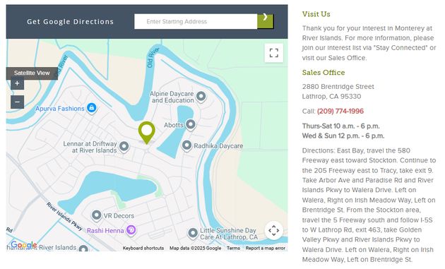 Monterey at River Islands, una colección completamente nueva de 75 casas unifamiliares, llegará pronto a la hermosa comunidad planificada de River Islands. Los exteriores únicos de estilo español de transición, estilo pradera moderno y estilo granja moderno darán paso a interiores encantadores y funcionales que ofrecen hasta 5 habitaciones y 2345 pies cuadrados. Anticipamos comenzar a construir en Monterey en el otoño de 2024 y la inauguración del modelo está prevista para principios de 2025 (o antes). Para recibir actualizaciones futuras sobre todo lo relacionado con Monterey at River Islands, ¡asegúrate de unirte a nuestra lista de interesados para recibir comunicaciones periódicas nuestras con todo lo que sucede! Mas información acerca de Monterey at River Islands